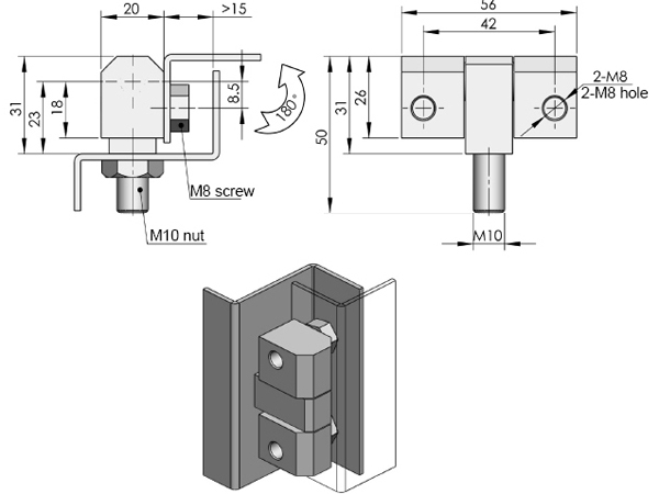 Industrial Fastener with Exposed Axle | Electrical Equipment Cabinet Hardware | Hinge to Suit Industrial Cabinet